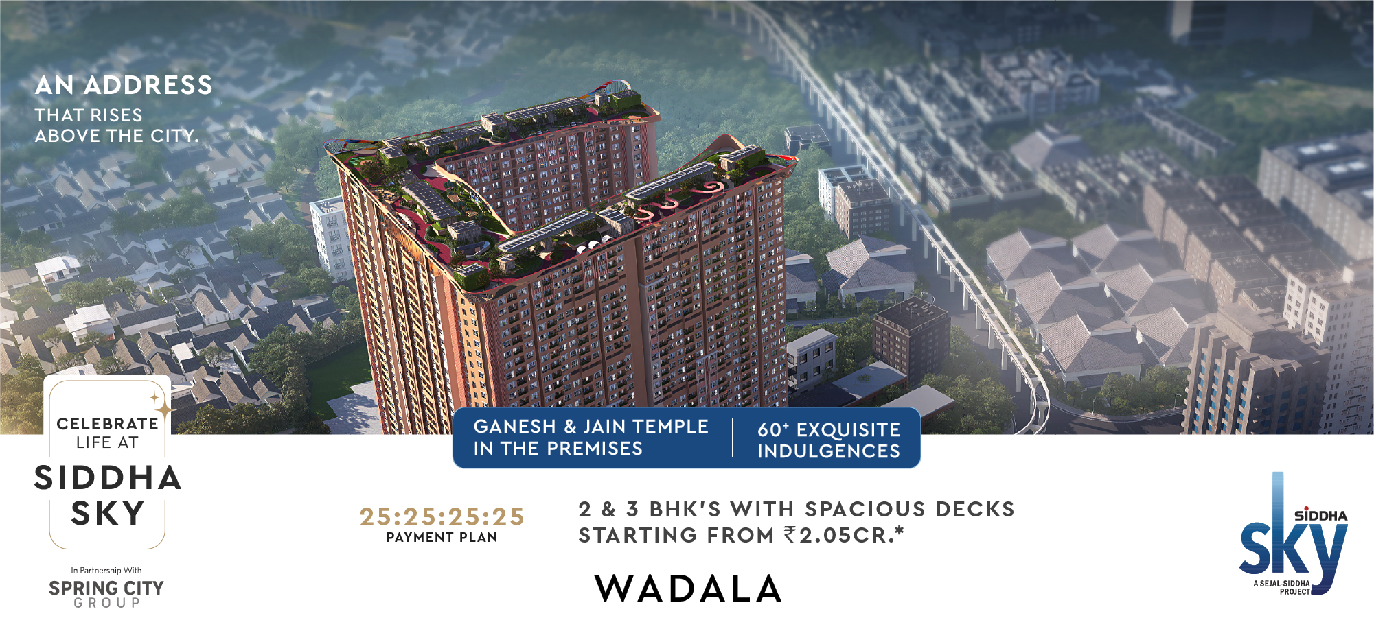 Since its inception in 1986, Siddha has been crafting residential and commercial spaces with a difference, to make good living affordable in 3 cities across India, namely Kolkata, Mumbai and Jaipur . Under the leadership of Group Chairman Shri Chandra Prakash Jain and Group Managing Director Shri Sanjay Jain, Siddha has won 35+ prestigious awards over the years. They have been the pioneers of Rooftop Skywalks in India.